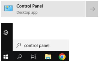 4. Open the "Control Panel" dialog by clicking the Windows icon and searching for Control Panel.